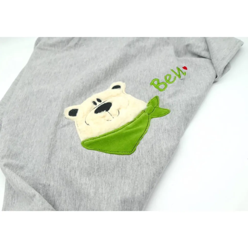 Bügeln erlaubt, aber bitte im Bereich der Applikation nur von links bügeln.