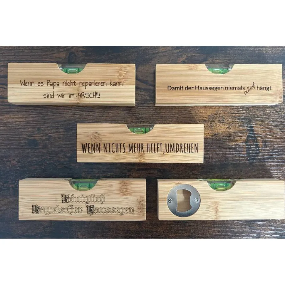 Fazit: Diese gravierte Bambus Wasserwaage mit Flaschenöffner ist das perfekte Geschenk für Heimwerker, Väter und alle, die praktische, nachhaltige und persönliche Geschenke schätzen.