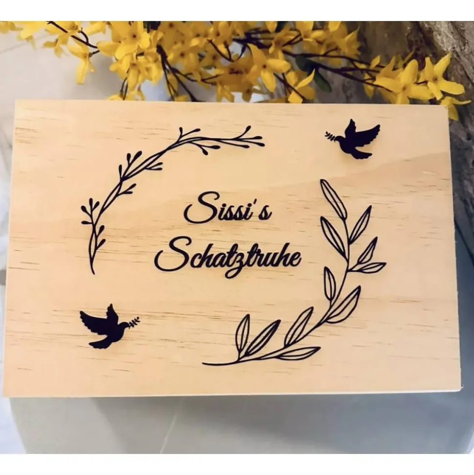 Personalisierte Erinnerungskiste , mit Kranzmotiv – Geschenk für alle Anlässe