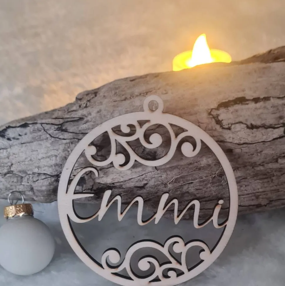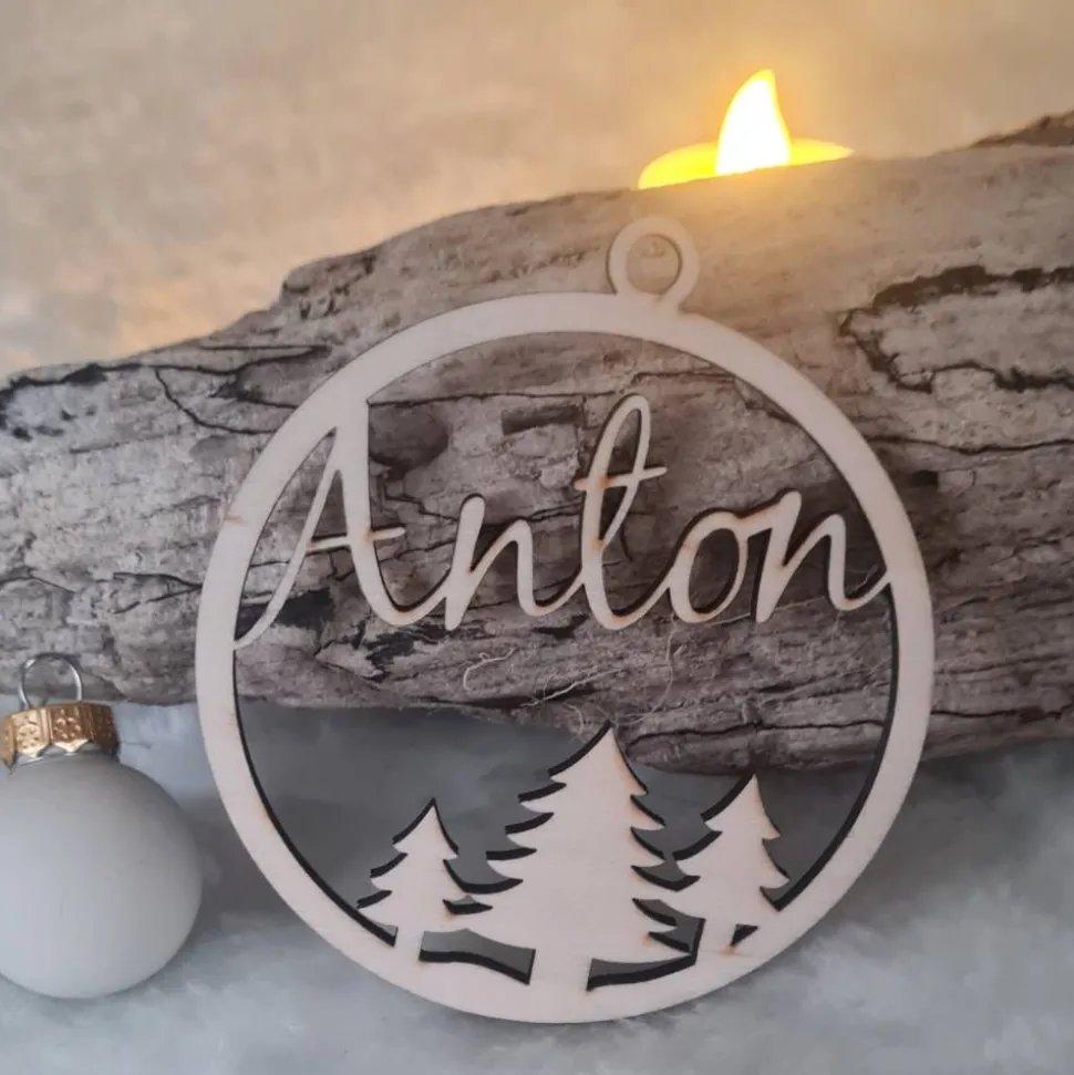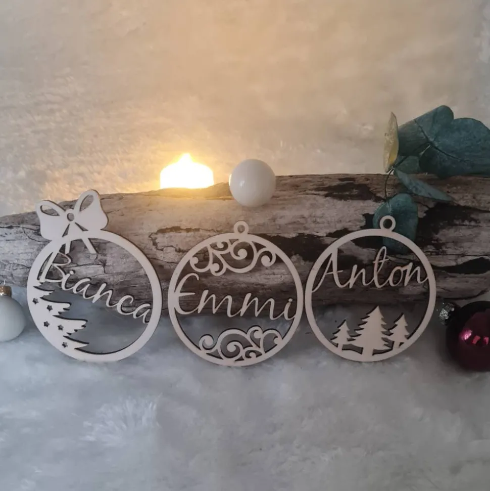 erleihe deinem Weihnachtsbaum eine besonders persönliche Note! Unsere liebevoll gestalteten Christbaumanhänger aus hochwertigem 3 mm Birkensperrholz sind die perfekte Ergänzung für eine warme, natürliche Weihnachtsdekoration. Jeder Anhänger wird präzise gelasert und ganz nach deinen Wünschen mit einem individuellen Namen personalisiert.
