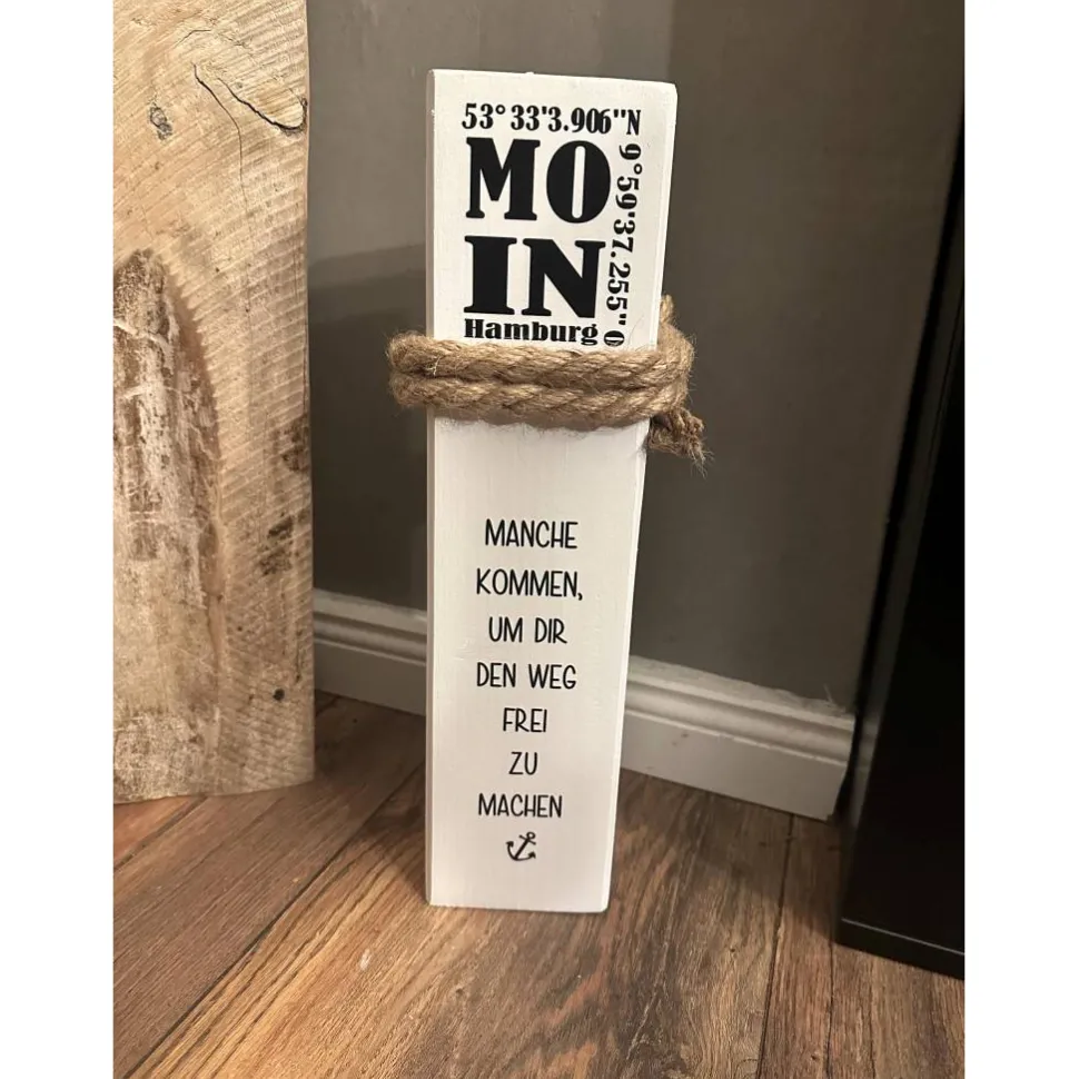 Gestalte mit diesem personalisierten Holzpoller deinen ganz eigenen Homeport. Wähle deine Stadt, Wunschtext und die passenden Koordinaten – und du erhältst ein einzigartiges Dekostück für Haus, Terrasse oder Garten.