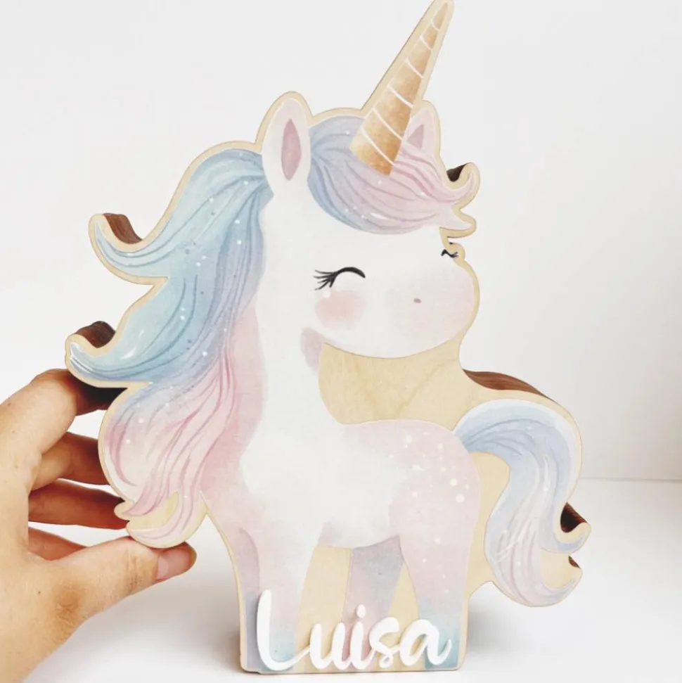 Diese bezaubernde Einhorn-Spardose ist ein echtes Highlight im Kinderzimmer! Liebevoll aus hochwertigem, robustem Holz gefertigt, verbindet sie ein kindgerechtes, magisches Design mit praktischer Funktionalität. Die sanften Pastelltöne in Rosa, Lavendel und Gold, das zarte goldene Horn und die detailreich bemalte Mähne machen das Einhorn zu einem wunderschönen Deko-Element, das jedes Kinderherz höherschlagen lässt.