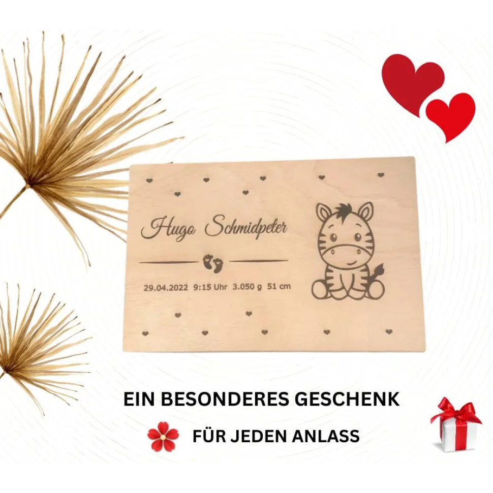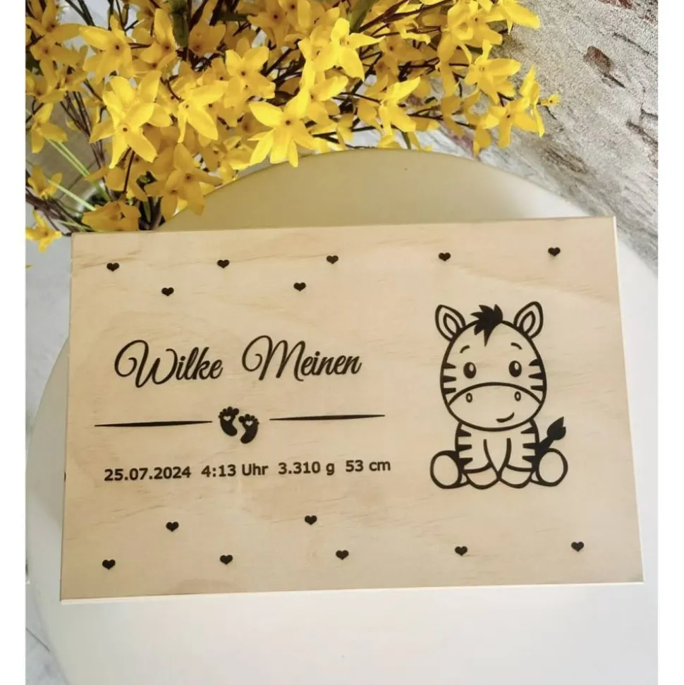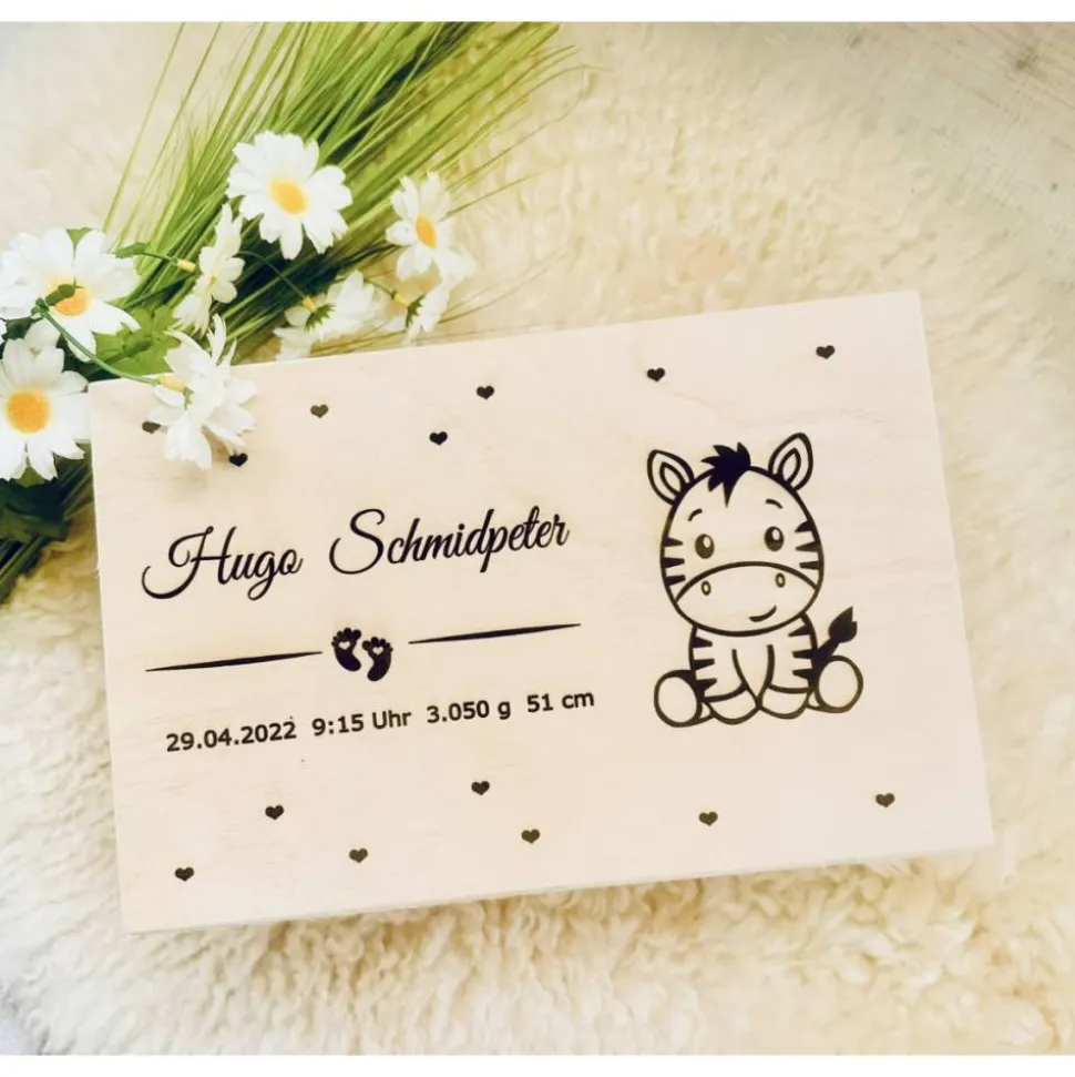 Personalisierte Erinnerungskiste für Babys – Tiergruppe Safari  – Personalisiert mit Name & Datum – Holzbox