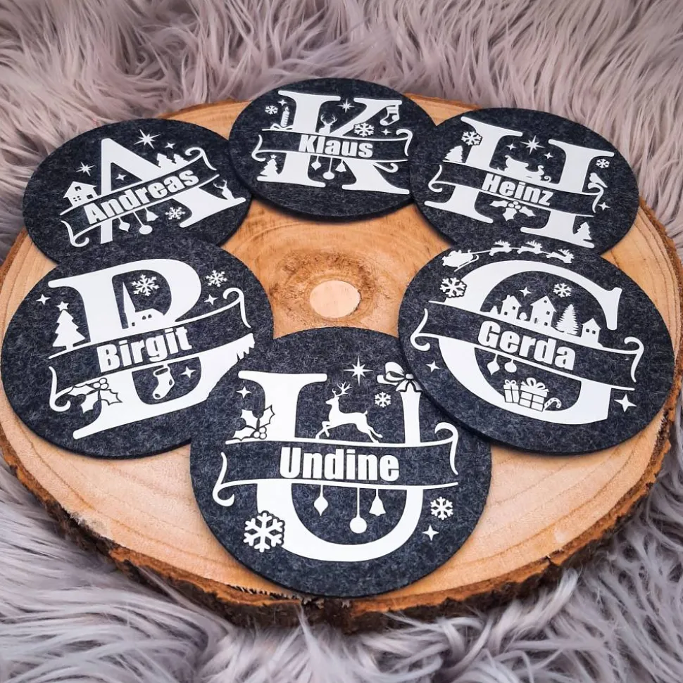 Werte deine Festtafel stilvoll auf – mit personalisierten Filzuntersetzern für Weihnachten!