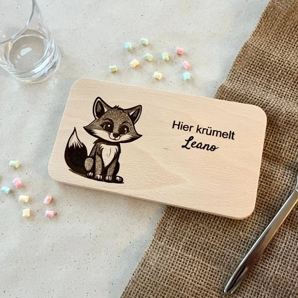 Entdeckt unser zauberhaftes Frühstücksbrettchen für Kinder aus hochwertigem Buchen Holz, dass mit viel Liebe in unserer kleinen Werkstatt in Deutschland designt und handgefertigt wurde. Der süße Fuchs wird präzise auf das Brettchen gelasert und verleiht jedem Frühstück eine extra Portion Freude.