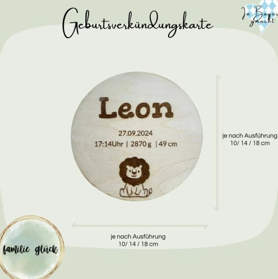 Überrasche deine Liebsten mit einer liebevoll gestalteten Holzscheibe zur Geburtsverkündung! Unsere personalisierte Holzkarte ist das perfekte Andenken zur Geburt eines Babys und wird individuell mit Namen, Geburtsdatum, Gewicht, Größe und Uhrzeit graviert. Das edle Naturholz verleiht dem Kunstwerk einen rustikalen und gleichzeitig modernen Look – ideal als Wanddeko im Babyzimmer, Türschild oder besonderes Geschenk für frischgebackene Eltern. Jede Holzscheibe ist ein handgefertigtes Unikat, das mit viel Liebe zum Detail gefertigt wird. Bring die strahlenden Augen und die großen Emotionen der Geburtsankündigung auf eine langlebige und stilvolle Weise zum Ausdruck. Jetzt bestellen und unvergessliche Erinnerungen schaffen!