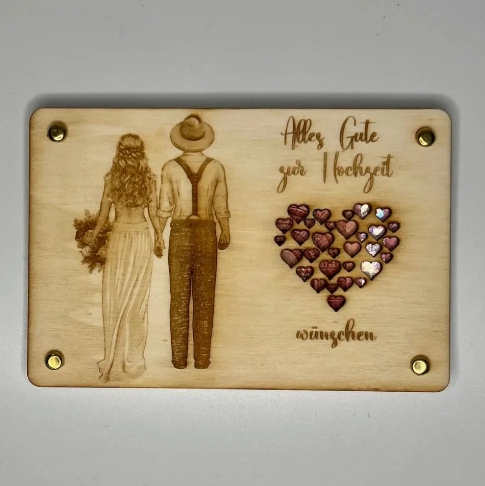 Entdecke die perfekte Geldgeschenkkarte aus hochwertigem Sperrholz, gelasert und handgefertigt – ideal zur Hochzeit!