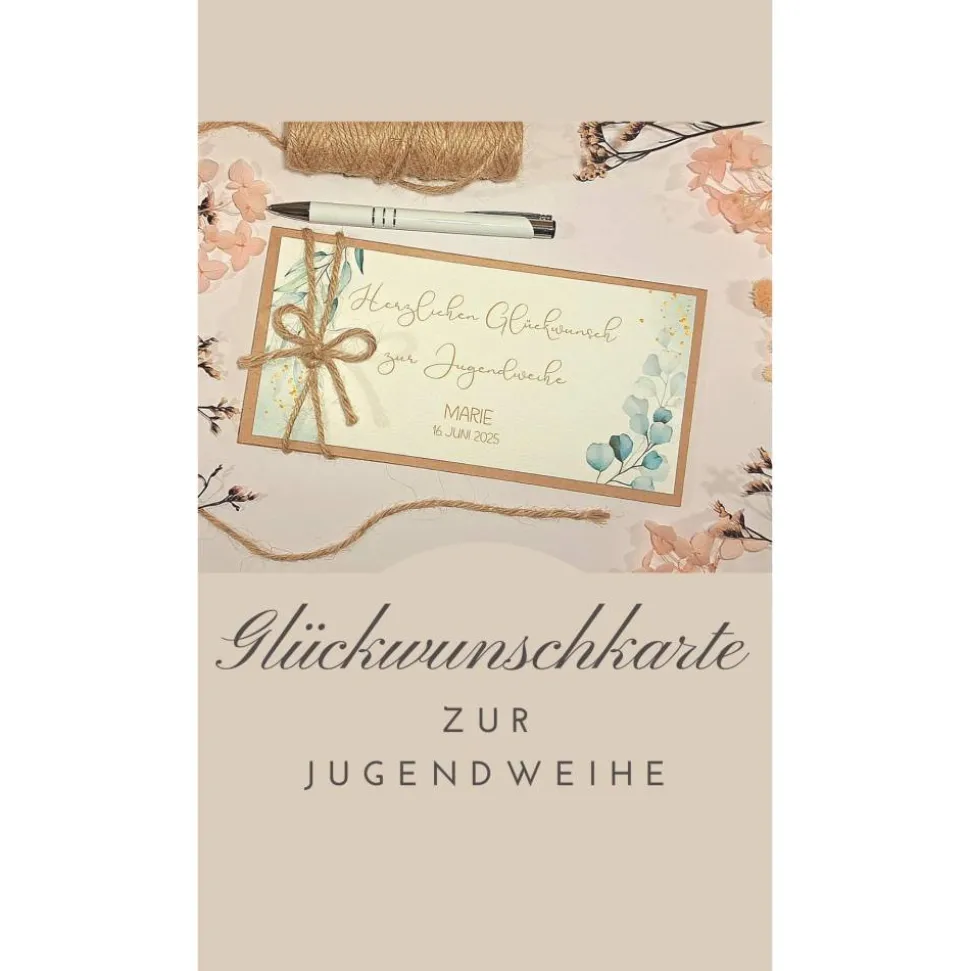 Lieferumfang: Eine personalisierte Karte zur Jugendweihe, inklusive weißem Umschlag.