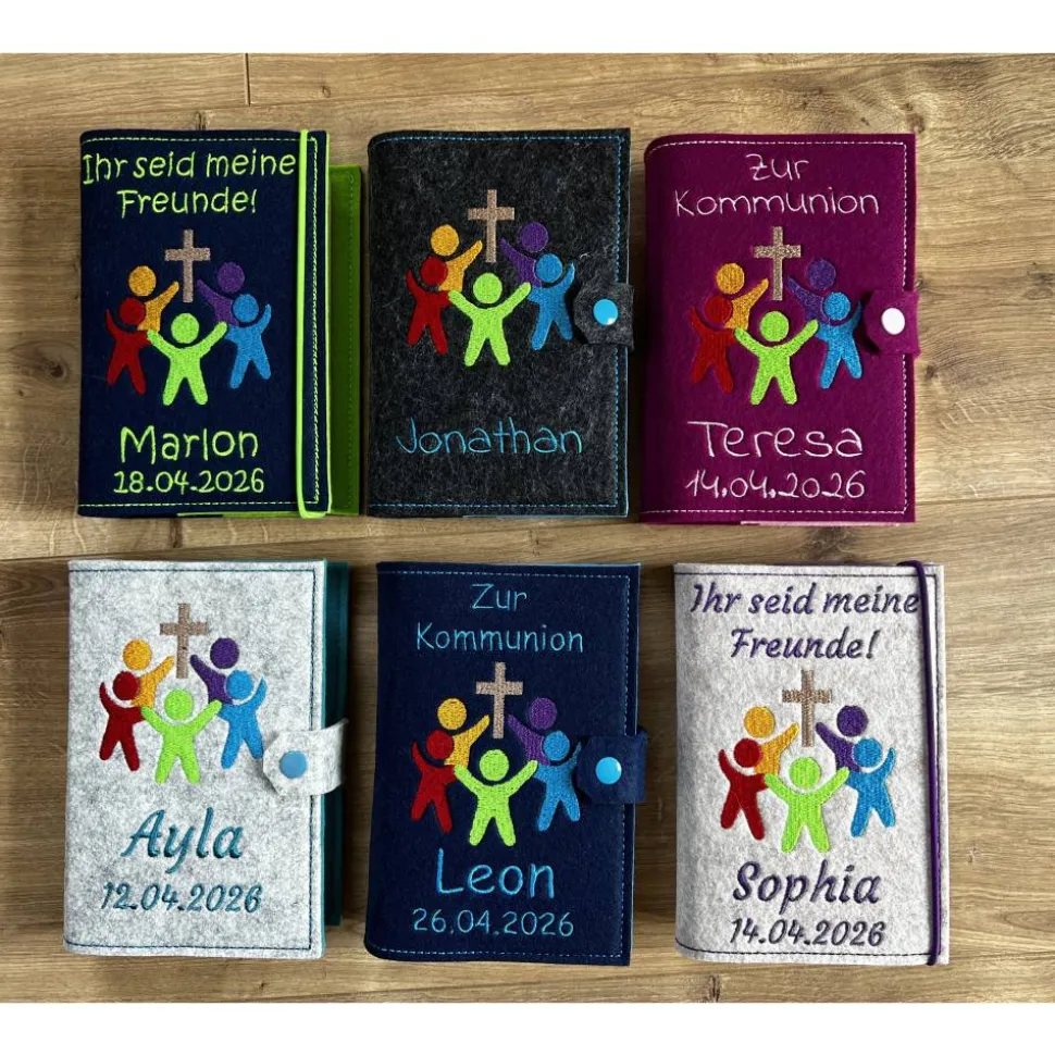„Ihr seid meine Freunde!“ – das Thema der Kommunion 2026. Dieses Motiv der Gotteslobhülle ist brandneu und wurde von uns selbst entworfen und digitalisiert. Es ist einzigartig und nur bei Taeradesign erhältlich.