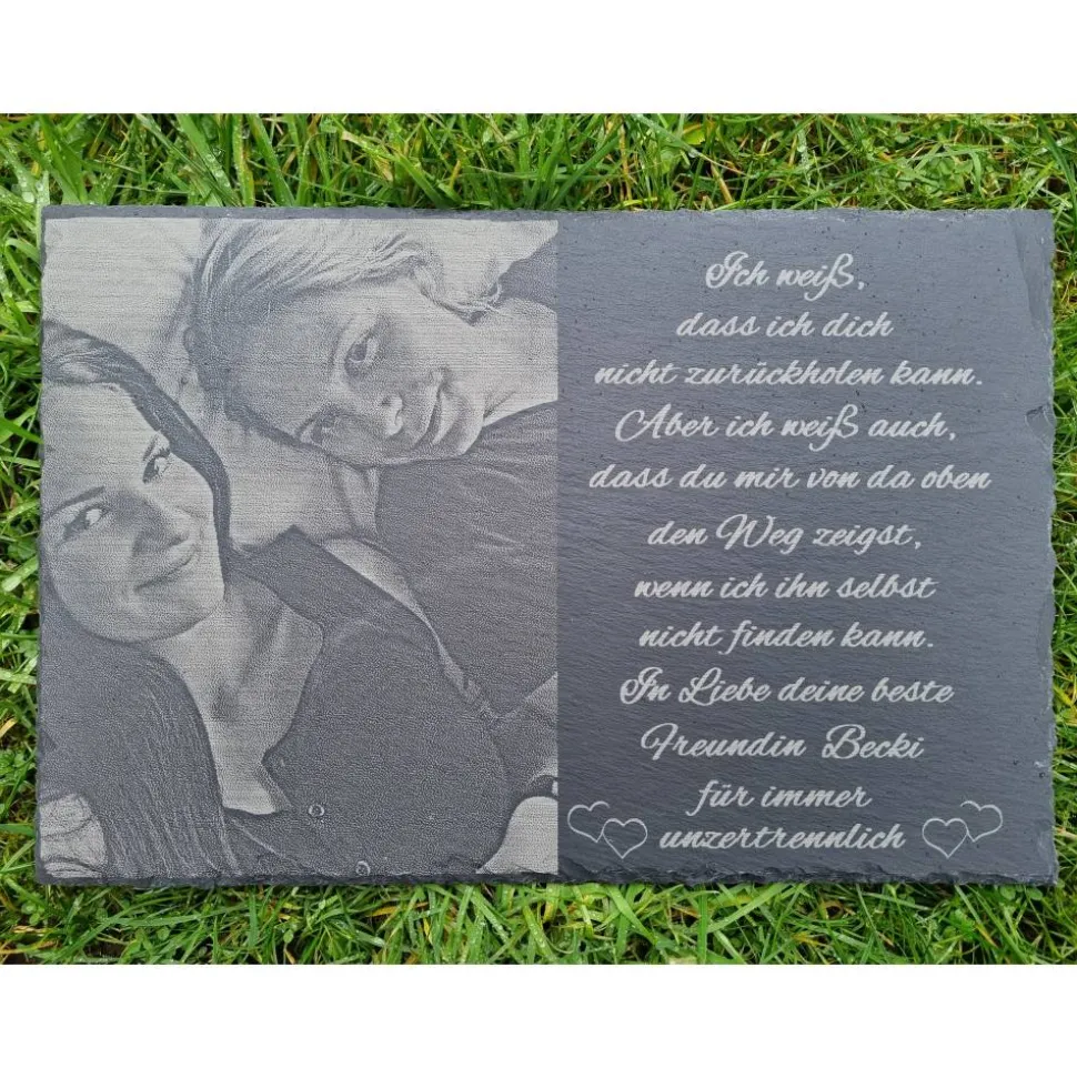 Setze ein bleibendes Zeichen der Erinnerung mit einer individuell gravierten Schiefertafel (30x20cm) als Grabstein oder Gedenktafel.