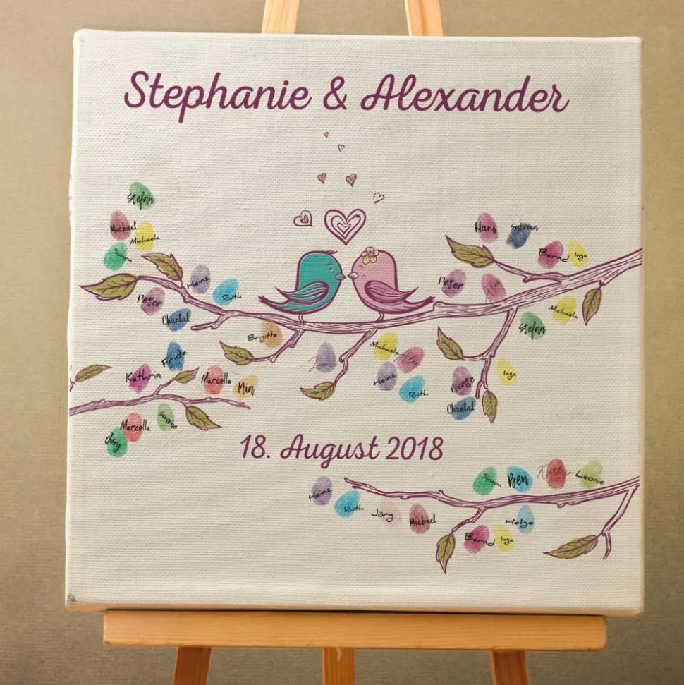 Mit dieser Leinwand als Gästebuch schaffen die Gäste eine ganz persönliche Erinnerung. Fingerabdrücke und Unterschriften machen daraus ein einzigartiges Kunstwerk.