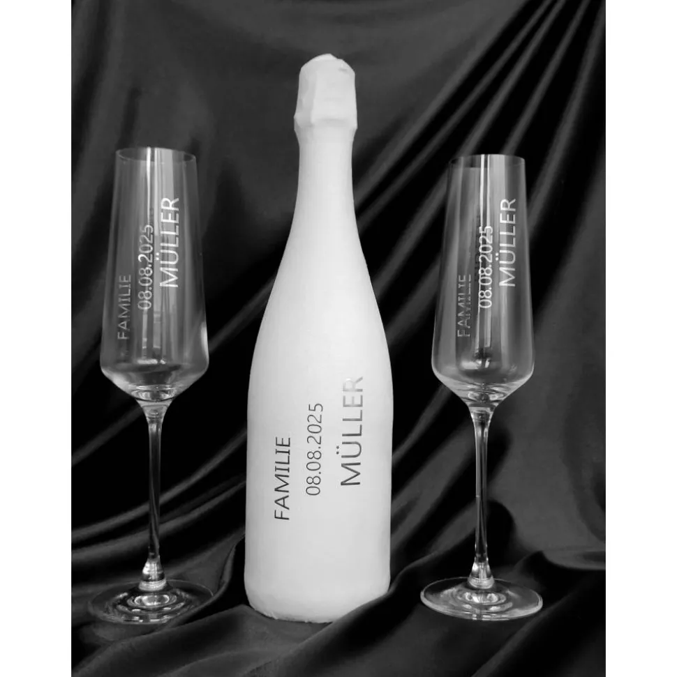 Personalisierte Hochzeitsgläser und Samtüberzug oder bemalte Champagnerflasche | Geschenk für Brautparty und Gäste