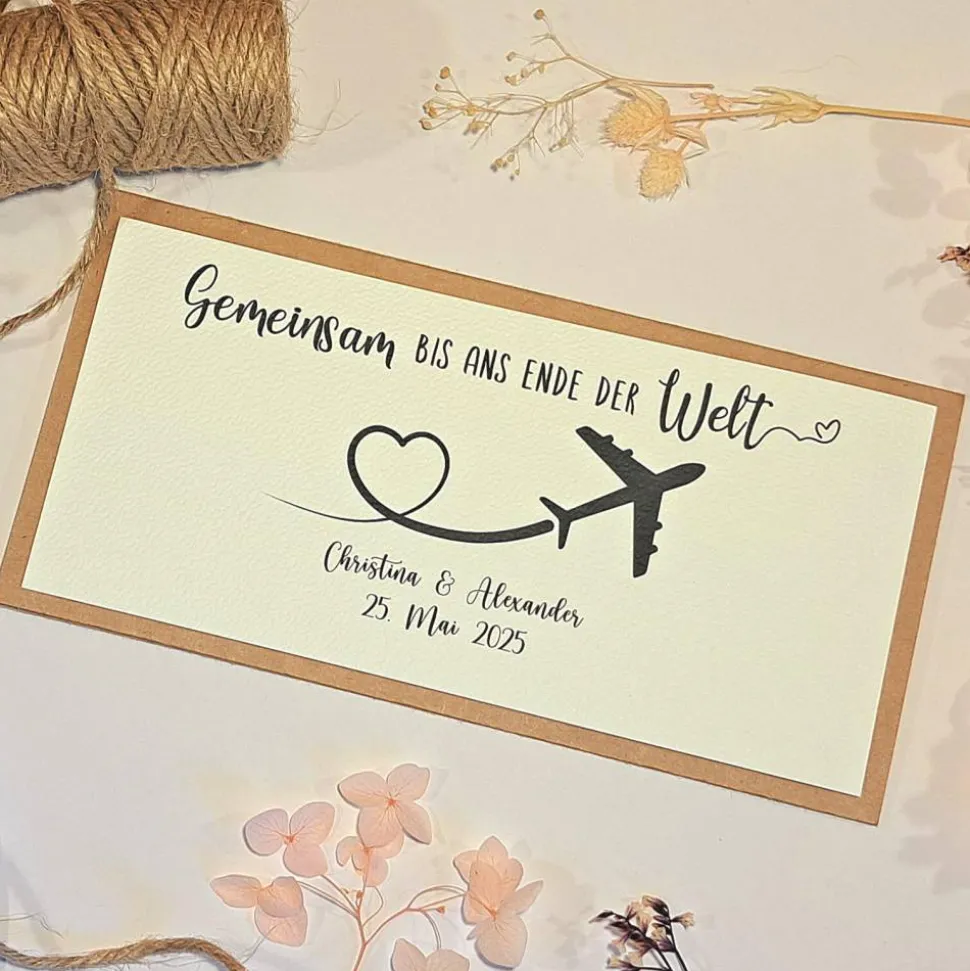 Überrasche das Brautpaar mit einer einzigartigen, personalisierten Hochzeitskarte, die perfekt für Reiseliebhaber ist!
