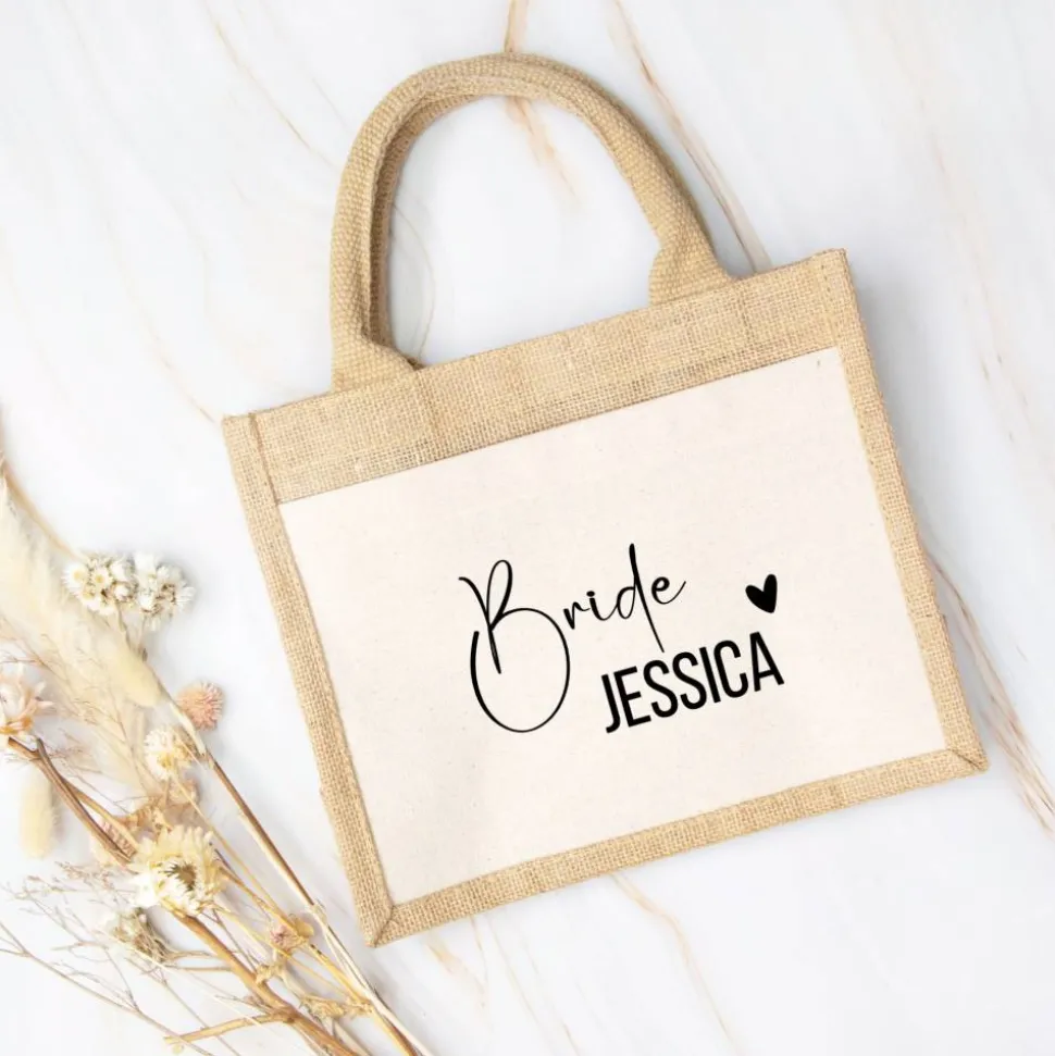 Die Aufschrift wird mit deiner Wunschfunktion (z. B. Braut, Trauzeugin, Brautjungfer, Schwester etc.) und einem Wunschnamen individuell angepasst. Außerdem kannst du dir die Farbe des Drucks aussuchen. Wähle zwischen schwarz, weiss, gold, silber und rosegold
