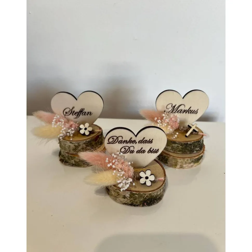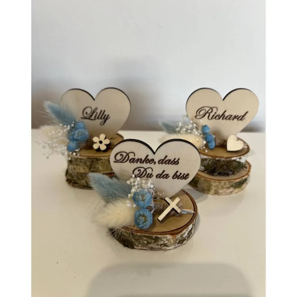 Hier biete ich einzigartige und schöne Namenschilder oder Gastgeschenke für verschiedene Anlässe an, ob zur Hochzeit, zum Geburtstag, zur Taufe, sie werden garantiert ein schöner Blickfang auf jedem festlichen Tisch sein 🙂