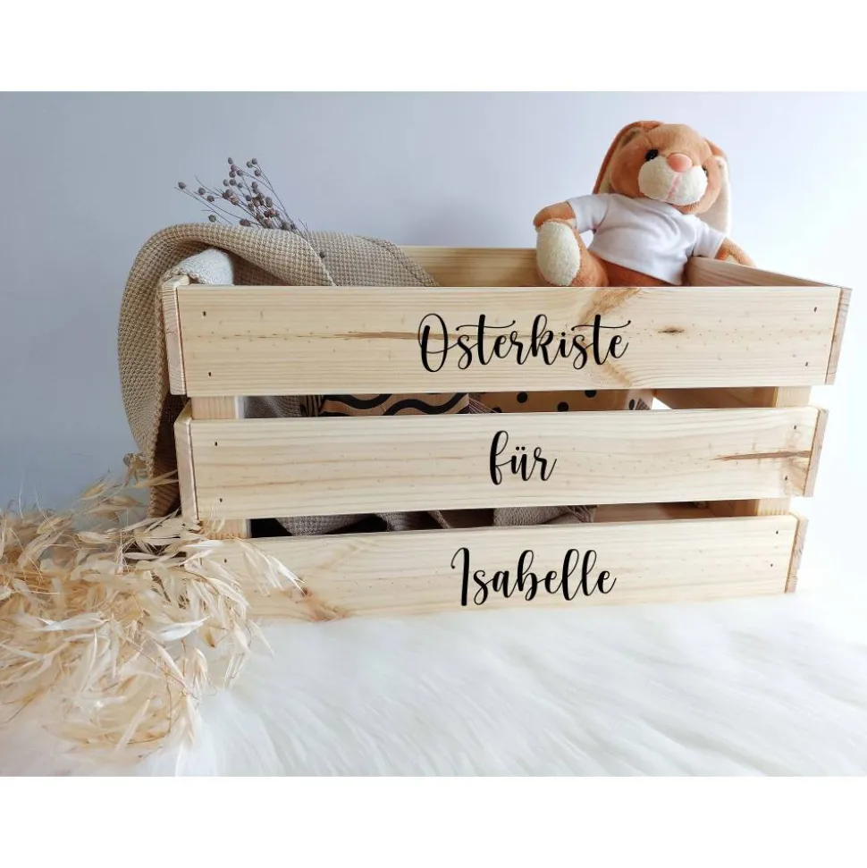 Entdecke die perfekte Alternative zum klassischen Osterkorb: Gestalte deine personalisierte Osterkiste mit Namen und überrasche deine Kinder oder Liebsten am Ostertag mit einem ganz individuellen Osternest! Ob als DIY-Projekt mit Vinyl-Schriftzügen zum Selbstaufkleben oder als bereits fertig personalisierte Kiste – hier findest du für jeden Geschmack die richtige Lösung.
