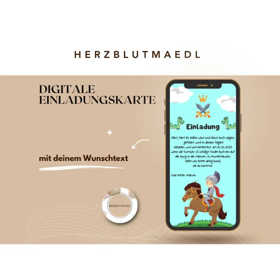 Mit dieser digitalen Einladung im Ritter-Design wird jedes Geburtstagskind zum Helden! Perfekt für Eltern, die eine originelle und unkomplizierte Einladung suchen.