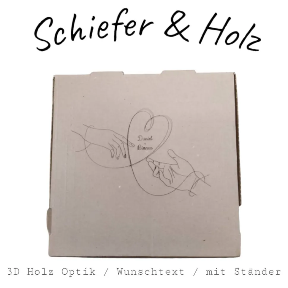 Personalisierte Schiefertafel mit 3D-Holzgravur – Perfekt als Geschenk für Hochzeit, Verlobung, Hochzeitstag