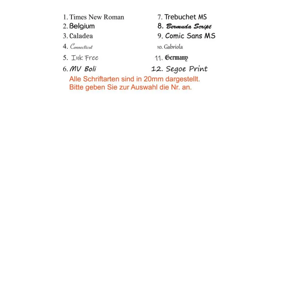 - Wahl der Schriftart (bitte Nummer oder Schriftart angeben)
