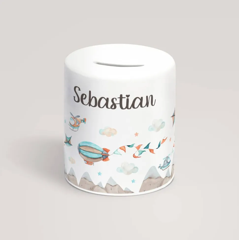 Diese Spardose aus Keramik ist rundum mit dem Panoramamotiv bedruckt und mit einem Namen personalisierbar. Sie eignet sich somit perfekt als persönliches Geschenk zum Kindergeburtstag, zur Einschulung, Taufe oder Geburt.