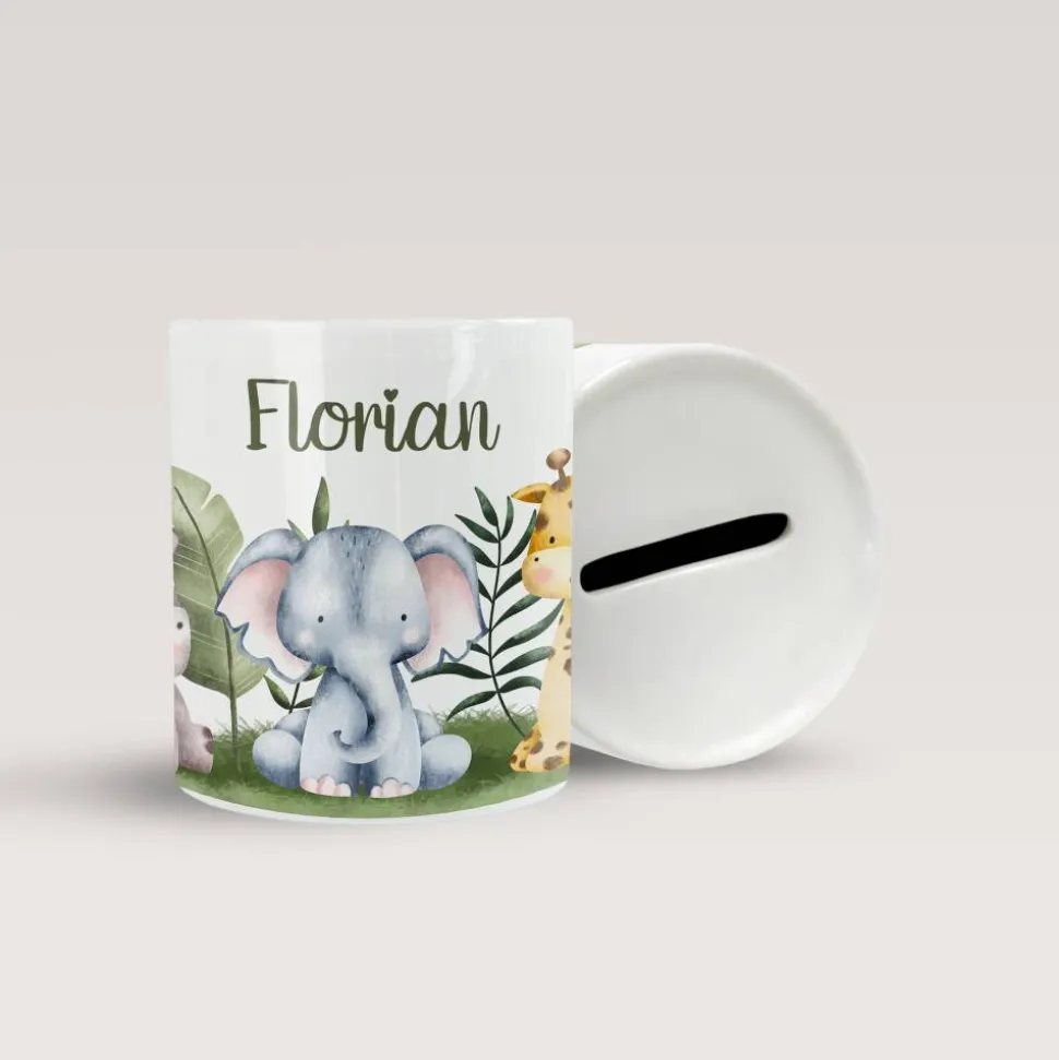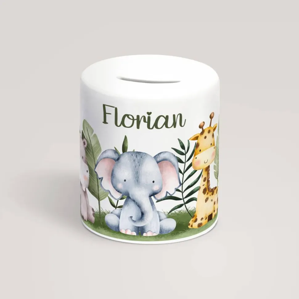 Diese Spardose aus Keramik ist rundum mit dem Panoramamotiv bedruckt und mit einem Namen personalisierbar. Sie eignet sich somit perfekt als persönliches Geschenk zum Kindergeburtstag, zur Einschulung, Taufe oder Geburt.