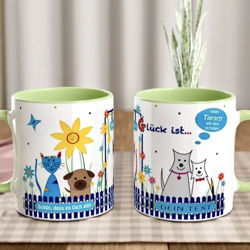 Die Tasse begeistert mit lustigen Motiven von Hunden und Katzen, farbenfrohem Design und individuellen Sprüchen. Füge auf der Vorderseite ganz einfach deine persönliche Botschaft hinzu. Wähle aus verschiedenen Farben und bringe noch mehr Freude in den Alltag deiner Lieblingstierärztin oder deines Lieblingstierarztes.