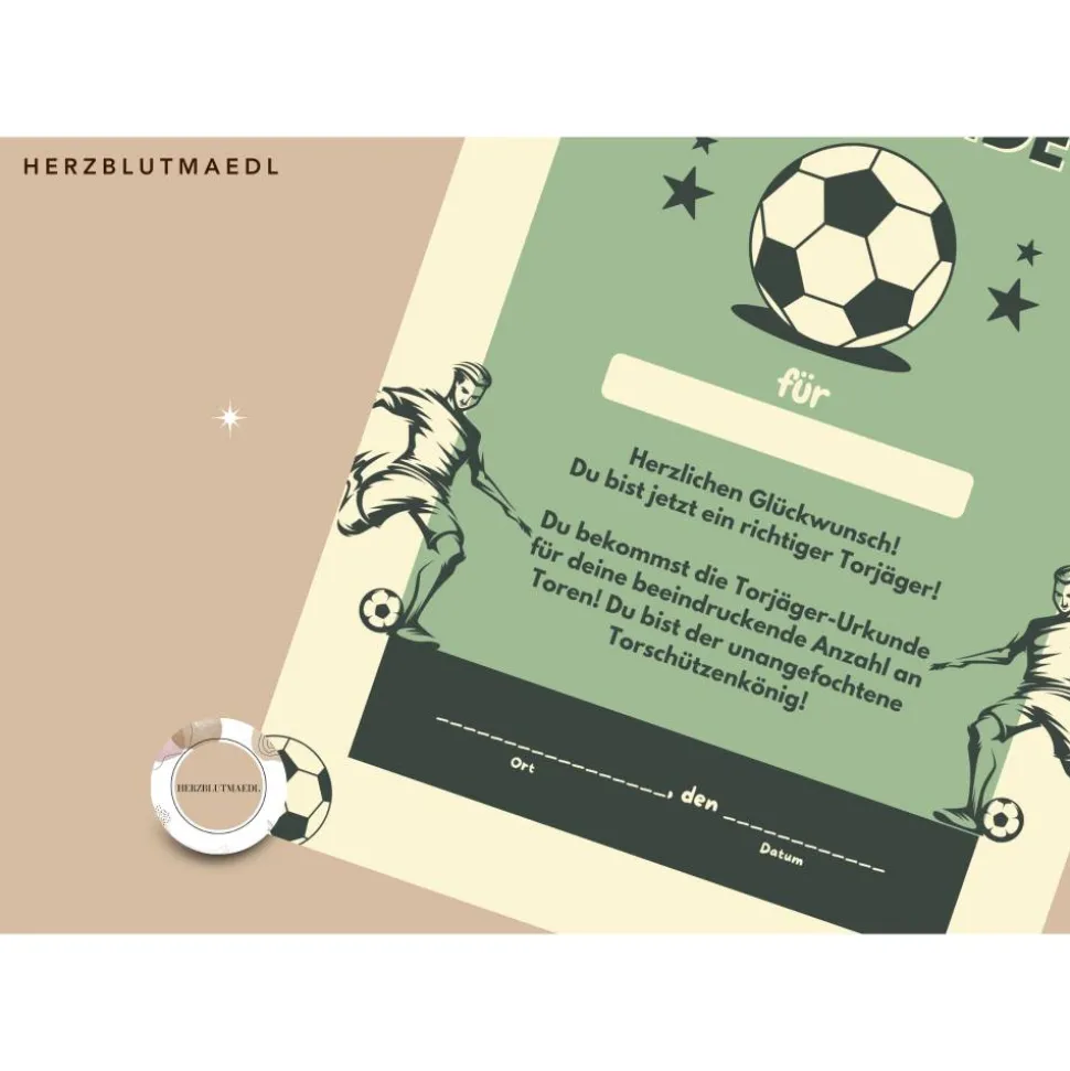 Du suchst nach einer besonderen Art, Erfolge und Momente festzuhalten? Unsere personalisierbaren Urkunden für Fußballturniere und Fußballpartys sind genau das Richtige für dich! Diese einzigartigen Zertifikate sind nicht nur ein tolles Andenken, sondern auch eine perfekte Möglichkeit, um deine Begeisterung für den Fußball zu zeigen. Ideal für Kinder und Erwachsene, ob für den kleinen Kicker im Garten oder das große Turnier mit Freunden. Mit liebevollen Designs und deiner ganz persönlichen Note machst du jede Feier unvergesslich.