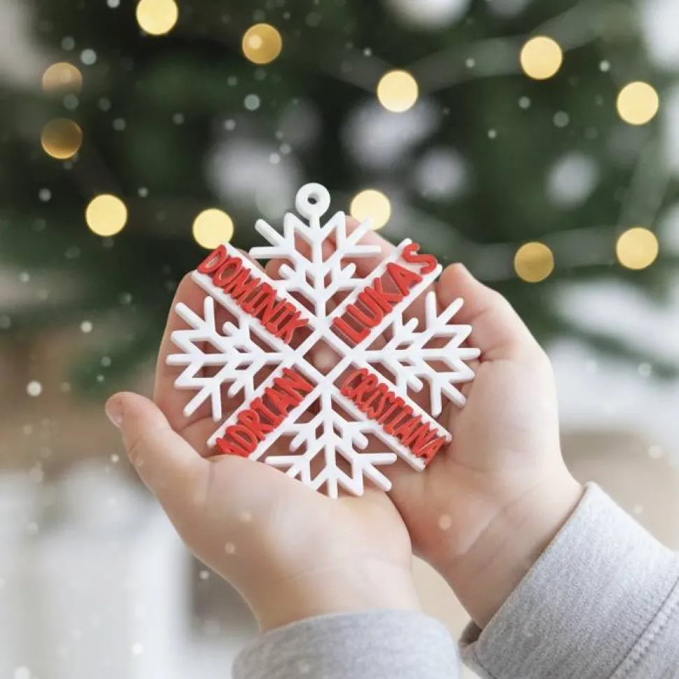 Personalisierte Weihnachtsbaum-Dekoration – bis zu 6 Namen – 3D-gedrucktes Ornament aus biologisch abbaubarem PLA