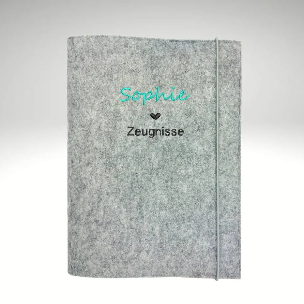 Stickerei: Name (Farbwahl) + Herz Zeugnisse