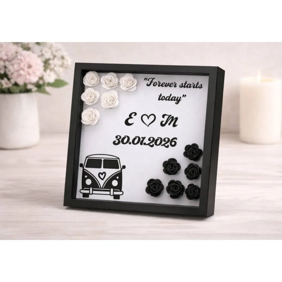 Dieser liebevoll gestaltete 3D-Bilderrahmen (Shadow Box) wird individuell nach deinen Wünschen angefertigt.