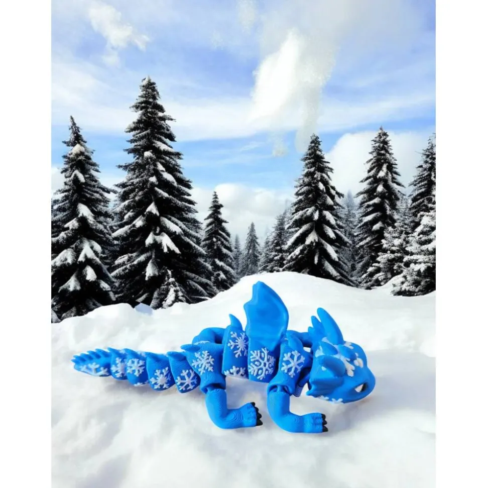 • ???? Der bewegliche Drache: Ein kleines Wunderwerk des 3D-Drucks! Er ist flexibel und kann in verschiedene Posen gebracht werden. Die Drachenfigur ist verziert mit einem detaillierten Schneeflockenmuster auf dem Rücken, den Flügeln und dem Schwanz.