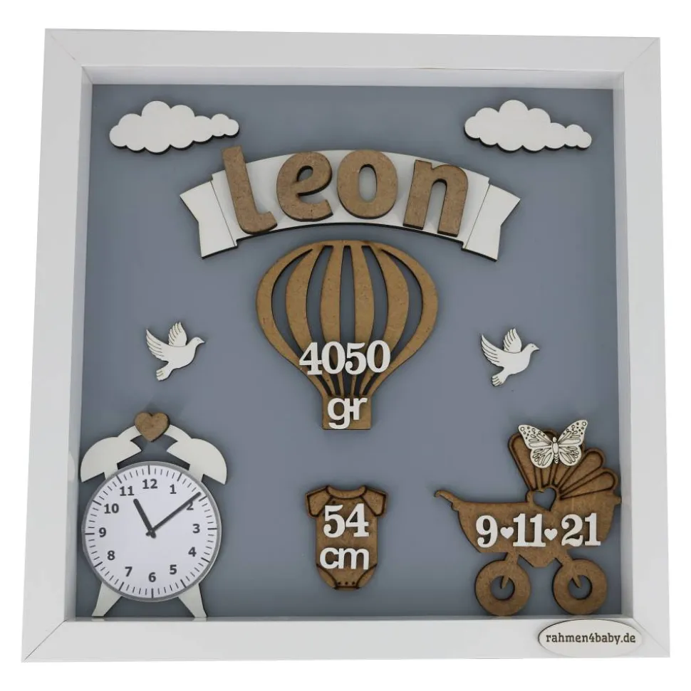 Dieses Produkt ist auch mit verschiedenen Hintergrundfarben z.B. in Blau und Rosa und anderen Babyrahmen im Kasuwa-Shop erhältlich.