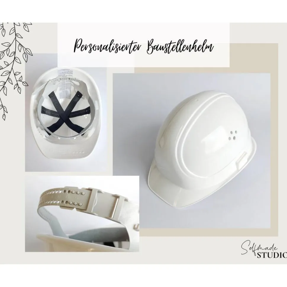 Im Lieferumfang: Ein Bauhelm mit Personalisierung nach Wahl. Weitere tolle Bauherren-Geschenke findest Du im Shop unter selfmadestudiode.