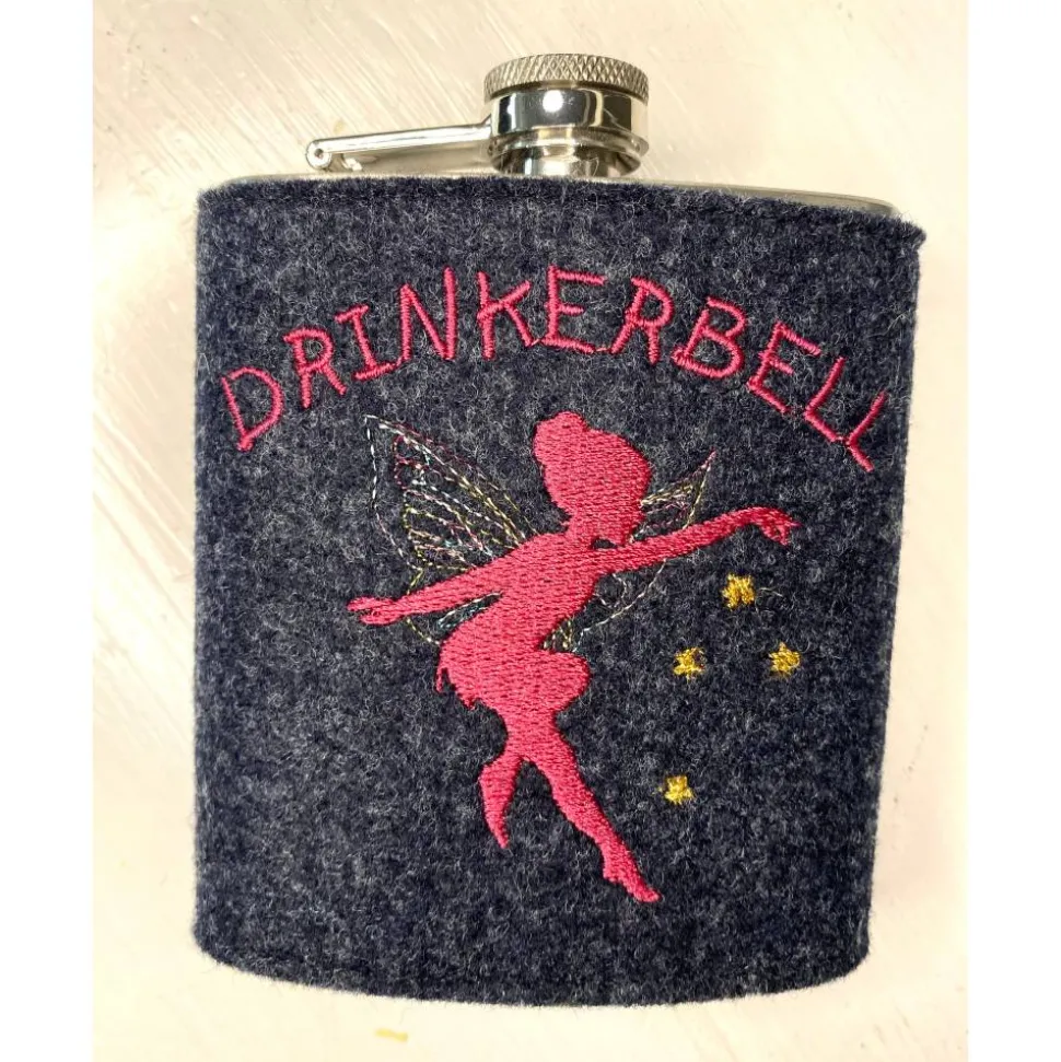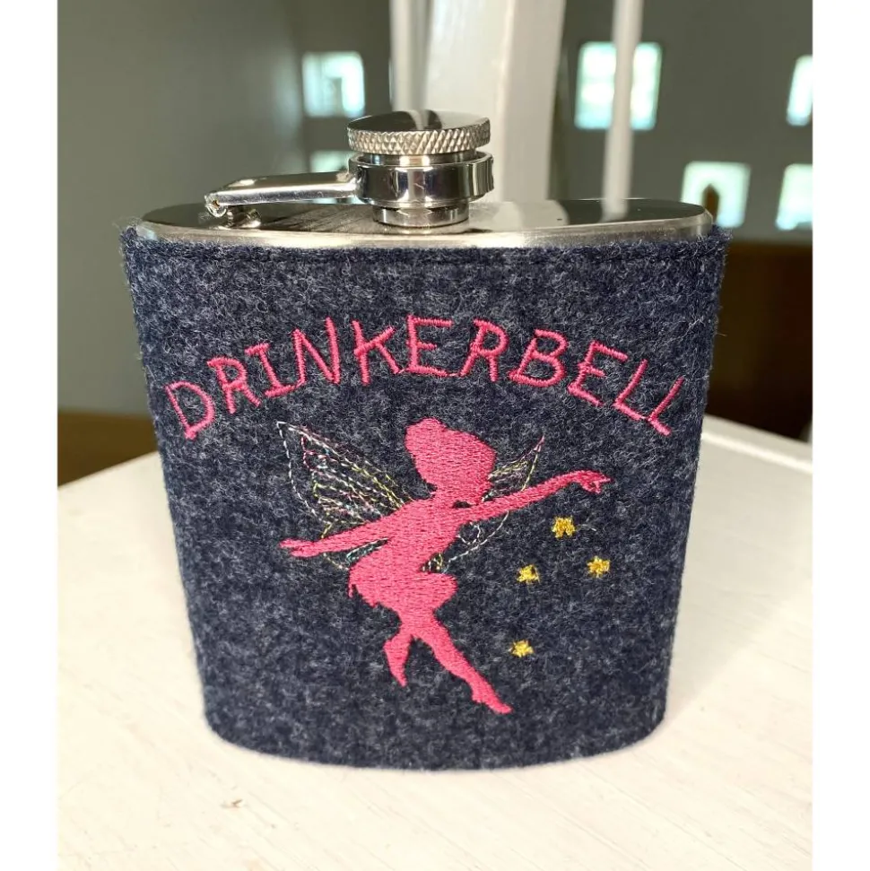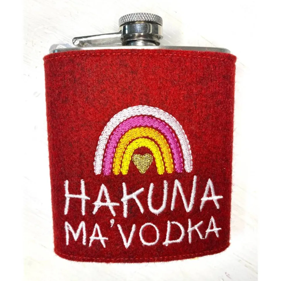 Unsere Flachmänner werden mit einer Filzmanschette umnäht. Das Design der Manschette liebevoll mi einem witzigen Spruch bestickt.