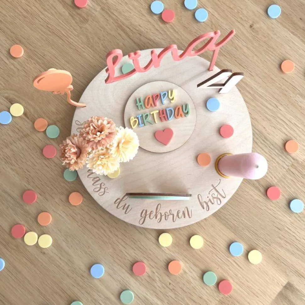 Außerdem kannst du den Geburtstagsteller mit zusätzlichem Zubehör aus unserem Shop beliebig erweitern und für andere Geburtstagsanlässe neu dekorieren.