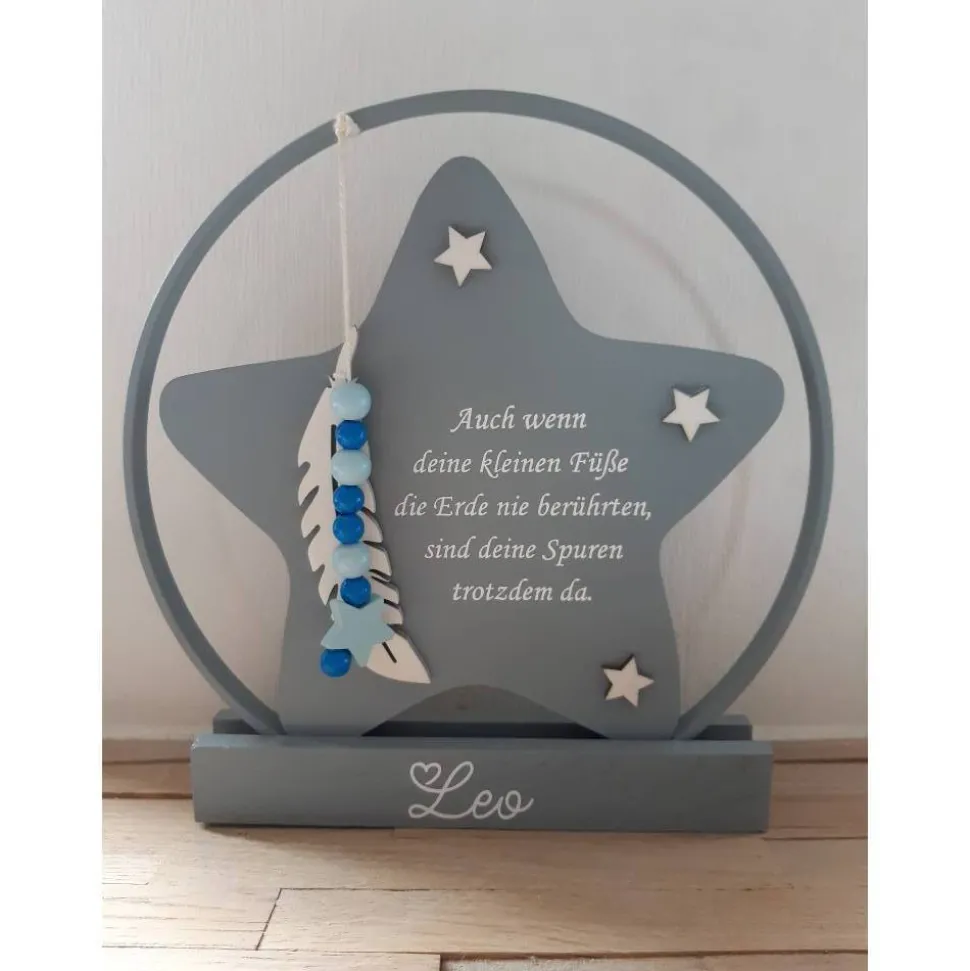Text: „Auch wenn deine kleinen Füßen die Erde nie berührten, sind deine Spuren trotzdem da“