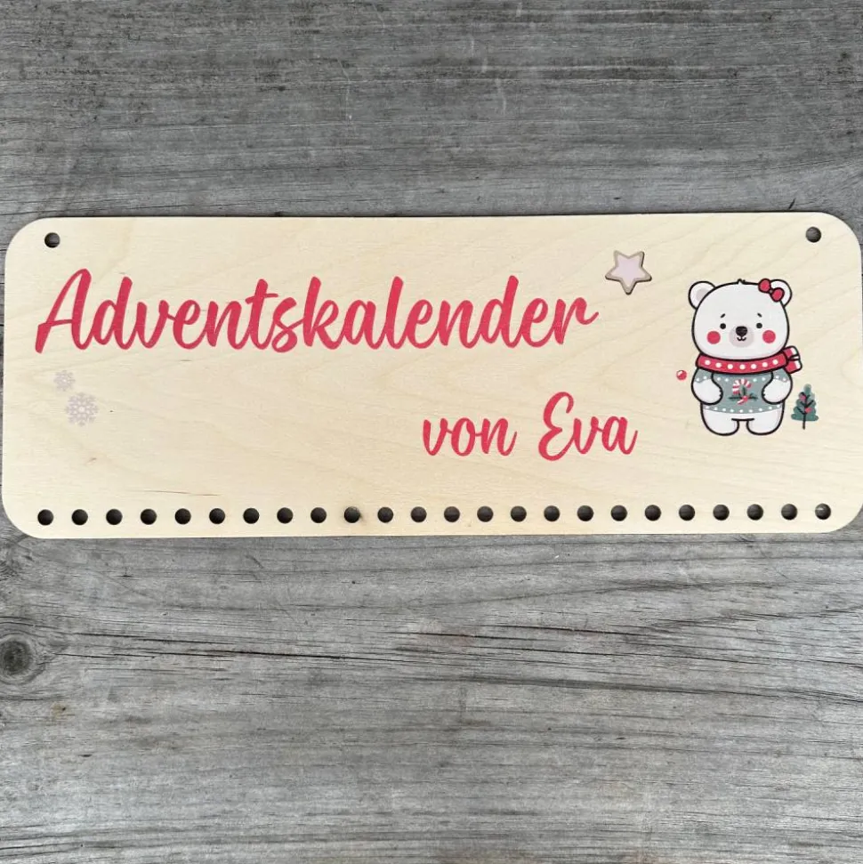 Personalisierter Holz-Adventskalender mit Eisbärin