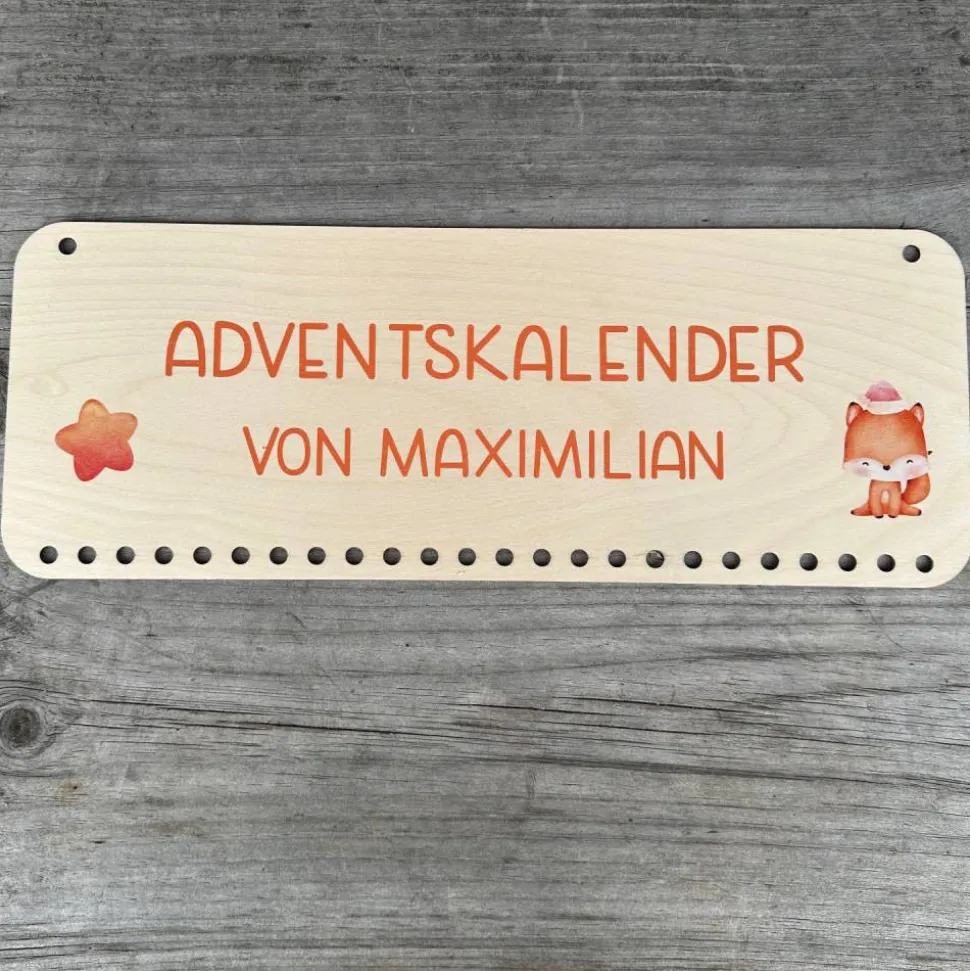 Auf Wunsch personalisieren wir den Adventskalender mit „Adventskalender von [Name]“ oder „[Name]s Adventskalender“, ergänzt durch weihnachtliche Motive.