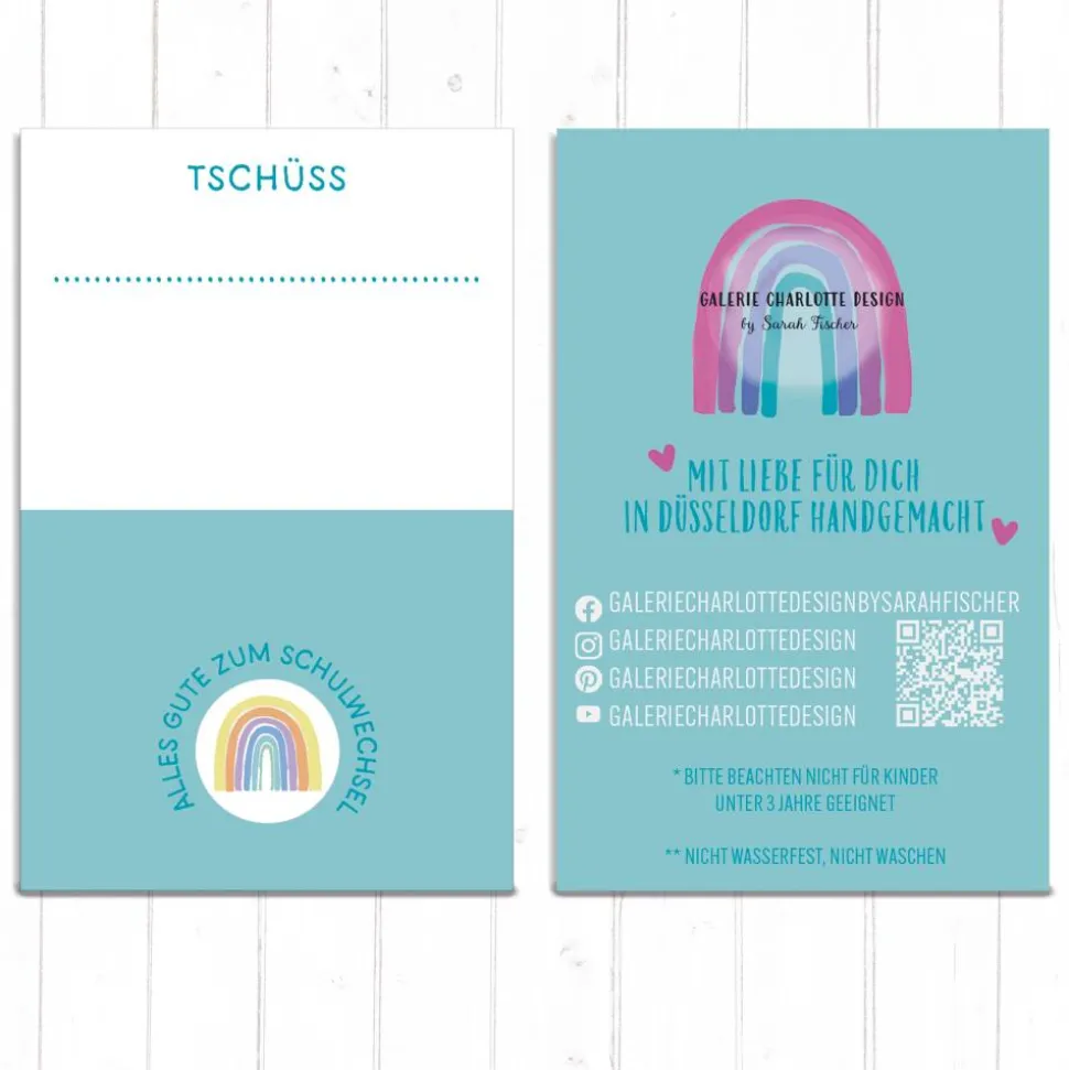 Besonders als Mitgebsel für die Grundschul-Abschlussparty ist dieser Button ein riesiges Highlight. Jedem Button lege ich zudem ein kleines Kärtchen bei, auf dem du den Namen des Schulkindes noch einmal handschriftlich festhalten kannst – perfekt zum Verschenken!