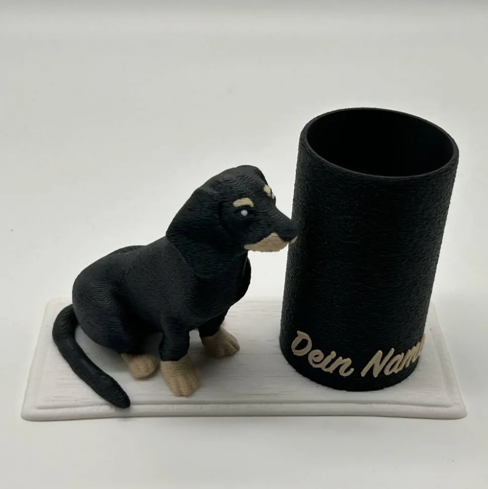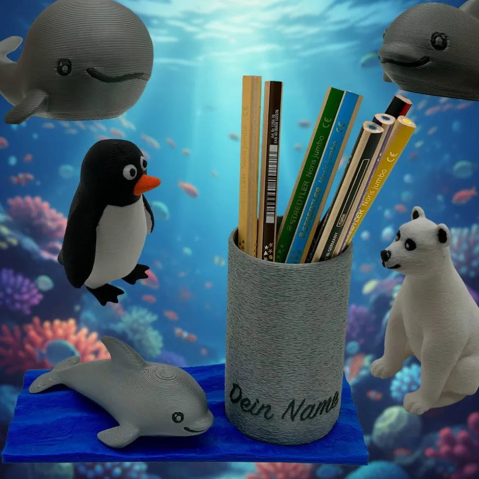 Dieser personalisierte Stiftehalter zur Einschulung bringt Ordnung auf den Schreibtisch und macht Kindern den Schulstart noch schöner. Das Tiermotiv ist frei wählbar und der Stiftehalter kann optional mit Namen personalisiert werden. So entsteht ein besonderer Schreibtisch Organizer für den ersten eigenen Lernplatz im Kinderzimmer oder ein liebevolles Geschenk für die Schultüte. Der Becher eignet sich für Buntstifte, Filzstifte, Schere oder Lineal und hilft dabei, wichtige Schulsachen griffbereit aufzubewahren. Gefertigt wird der Stiftehalter im 3D-Druck aus PLA. Die Maße betragen innen ca. 5,5 cm, komplett ca. 18 x 8 x 11 cm. Zur Auswahl stehen 28 Tiermotive, darunter Dino, Einhorn, Panda, Eule, Elefant, Koala, Katze, Hund und viele weitere.