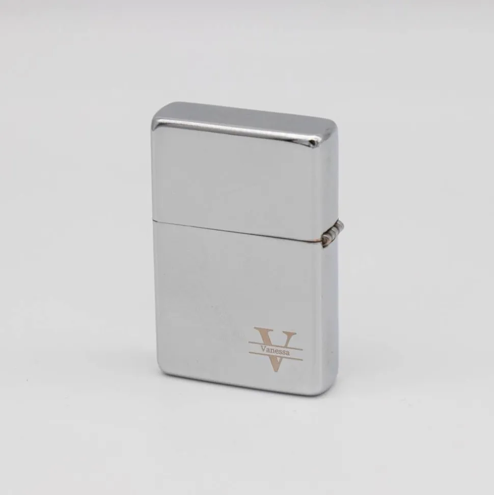 Wählen Sie einen Buchstaben für das Monogramm und ergänzen Sie einen Namen, der elegant in das Monogramm integriert wird. Außerdem können Sie entscheiden, ob das Monogramm für Rechts- oder Linkshänder angepasst und entsprechend auf der bevorzugten Seite des Feuerzeugs angebracht wird.