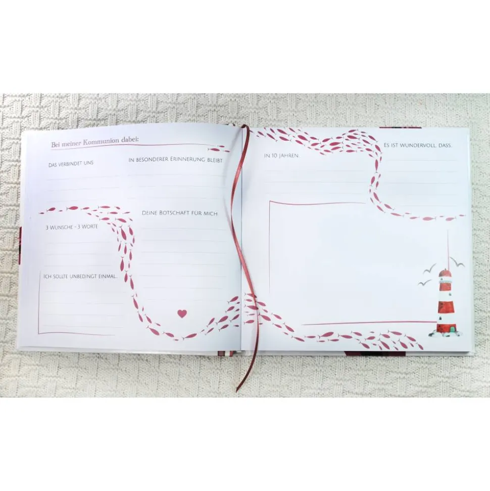 Das personalisierte Gästebuch zur Kommunion bietet Platz für ganz viele Glückwünsche, Gedanken zum Erwachsenwerden und Fotos.