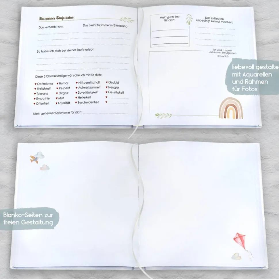 Bewahrt die schönsten Erinnerungen an die Taufe in einem einzigartigen und liebevoll gestalteten Buch! Dieses personalisierte Taufalbum verbindet stilvolles Design mit viel Platz für Fotos, Wünsche und persönliche Botschaften.