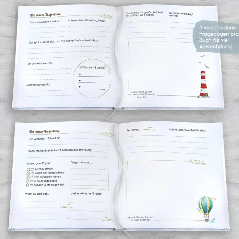 2. Gästebuch mit Einleitung, Fragebögen & Blankoseiten