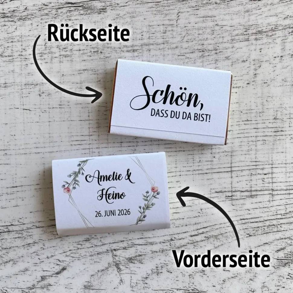 Die Vorderseite wird mit Ihren Wunschdaten im floralen Design bedruckt. Auf der Rückseite findet sich eine herzliche Botschaft Ihrer Wahl. Wählen Sie Ihre persönliche Kombination für Vorder- und Rückseite aus den Motiven in der Fotogalerie – jedes Motiv ist für jeden Anlass möglich.