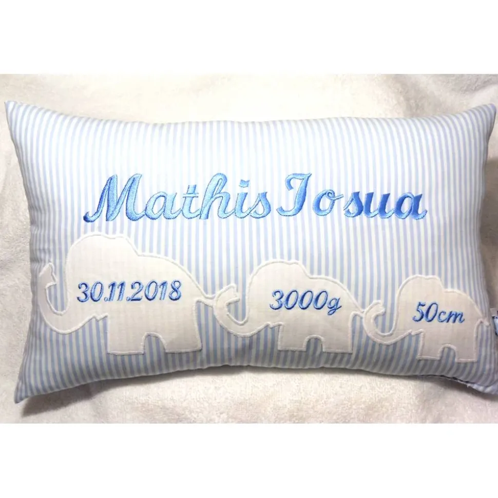 Verschenke ein einzigartiges Geburtskissen mit Namen, Gewicht, Größe und Datum – liebevoll bestickt und individuell gefertigt!