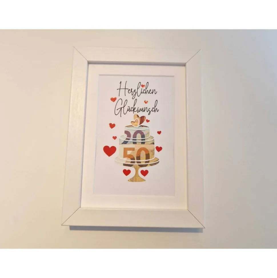 Der Bilderrahmen wird OHNE Geld versendet. Es handelt sich lediglich um den Bilderrahmen mit oben beschriebener Karte. Deko nicht enthalten.