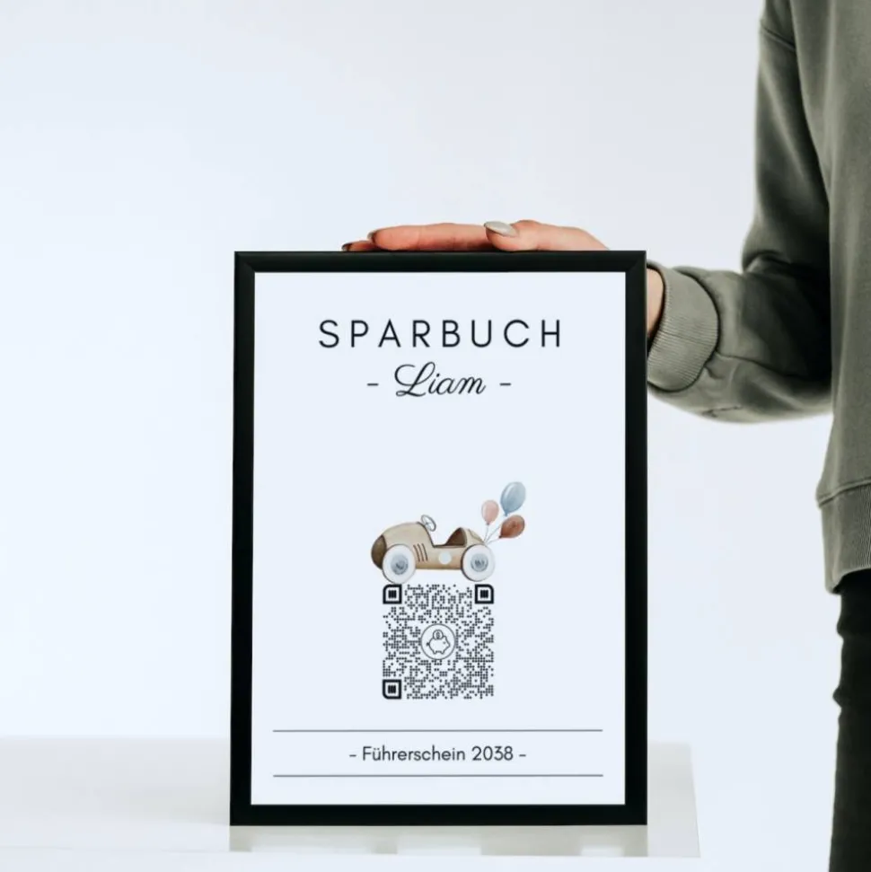 Personalisiertes Geldgeschenk | Virtuelles Sparbuch QrCode Bild | Motiv Führerschein