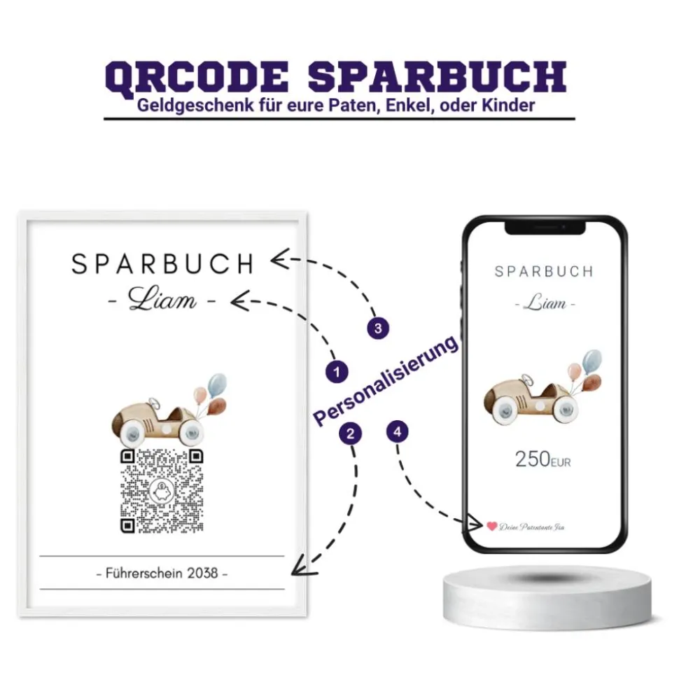 Schreibe die erste Bewertung für „Personalisiertes Geldgeschenk | Virtuelles Sparbuch QrCode Bild | Motiv Führerschein“ Antworten abbrechen