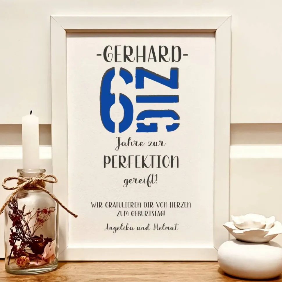 Entdecke das ideale Geldgeschenk zum 60. Geburtstag: Mit diesem personalisierten Bilderrahmen bringst du nicht nur Geld, sondern auch Humor und Stil auf die Feier! Der einzigartige Spruch „6ZIG Jahre zur Perfektion gereift“ macht dein Präsent zum Hingucker und sorgt garantiert für begeisterte Lacher.